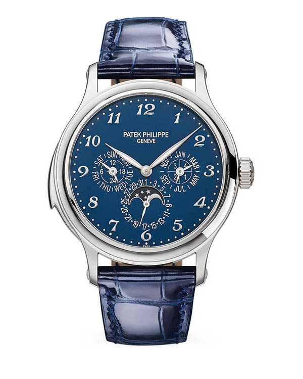 直徑42mm 18K白金錶殼/時間指示、三問功能、月相、星期、日期、月份、日夜顯示、閏年與萬年曆功能/R 27 Q自動上鍊機芯/藍色大明火琺瑯面盤/藍寶石水晶鏡面、透明底蓋/無防水/參考價請電洽