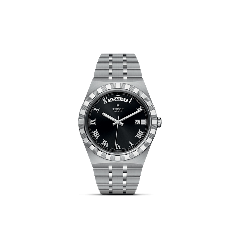 不銹鋼旋入式上鏈錶冠,飾以浮雕帝舵表玫瑰標誌,配圓紋磨砂鋼上鏈錶冠軸