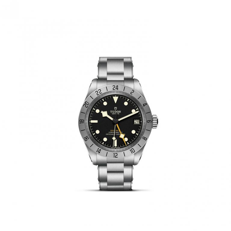 Black Bay GMT擴展Black Bay系列,引入極為實用的複雜功能──「GMT」,即多時區功能。Black Bay GMT配備搶眼的旋轉外圈,沿用Black Bay系列的深藍色和酒紅色配搭,啞面Black Bay GMT同樣向GMT這一傑出功能致敬。
